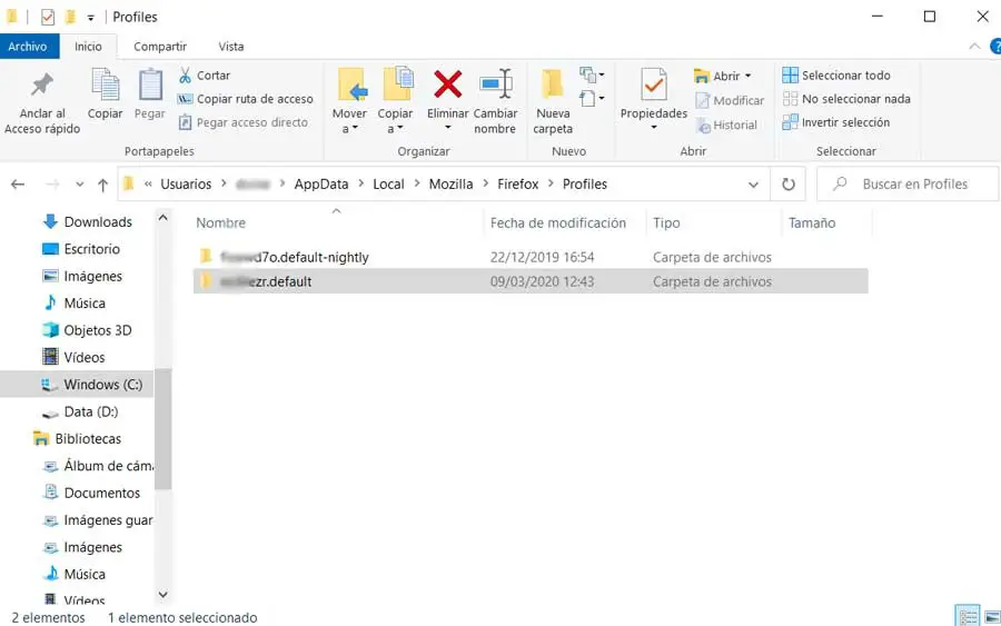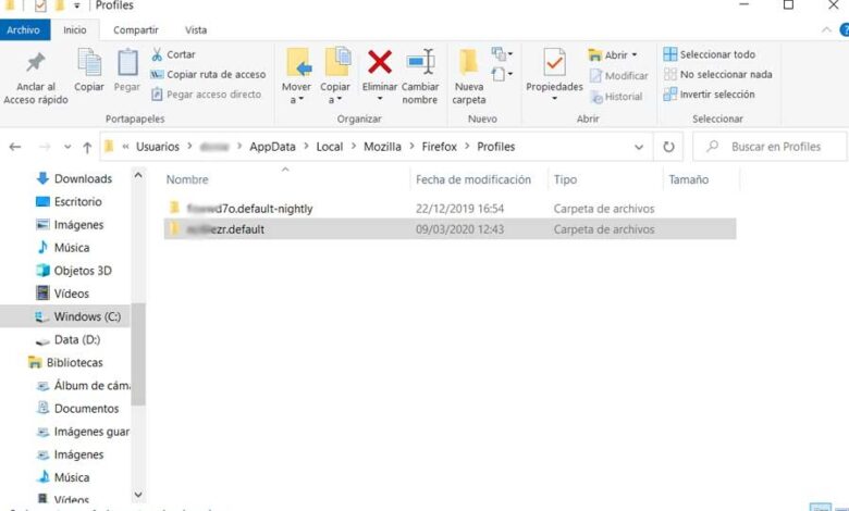 C’est pourquoi nous pouvons confirmer que faire une copie de sauvegarde d’un profil Firefox n’est pas difficile. Ainsi, si nous voulons faire une sauvegarde manuelle, nous pouvons le faire à partir de l’Explorateur de fichiers Windows . Une fois dans cela, nous devrons aller dans le dossier dans lequel le programme Mozilla stocke les données de chaque utilisateur enregistré. Nous n’aurons qu’à aller sur le chemin du disque suivant: «C: \ Users \ USUARIO \ AppData \ Local \ Mozilla \ Firefox \ Profiles».
