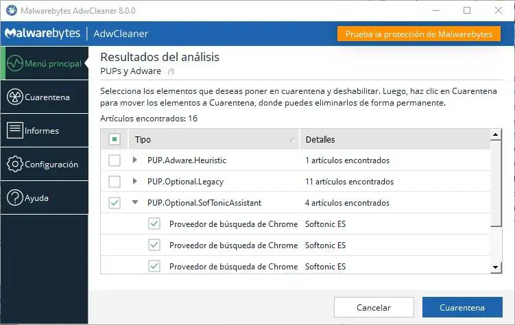 La prochaine étape consistera à utiliser des outils, tels que AdwCleaner. Ceux-ci nous permettent d’éliminer tous les bloatwares que vous avez installés sur votre ordinateur et qui pourraient nous mettre en danger.