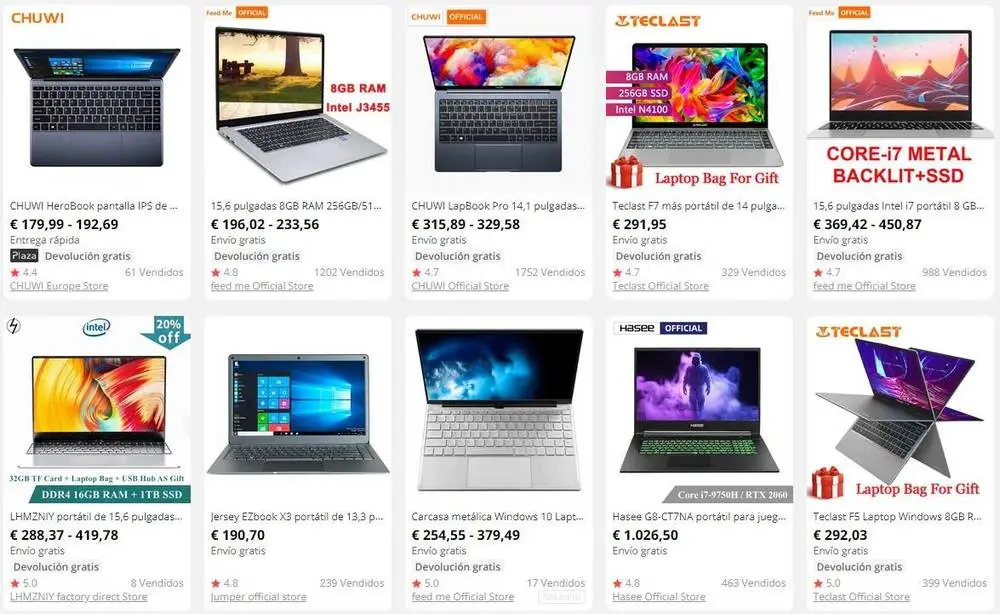 Au-delà d’ASUS, de Sony ou de Lenovo, on trouve sur Internet un grand nombre d’engrenages beaucoup moins connus, ce que l’on appelle les «engrenages chinois». Ces ordinateurs sont généralement beaucoup moins chers que ceux que nous pouvons acheter dans les magasins d’Espagne. La puissance peut parfois même correspondre à celle d’autres ordinateurs qui peuvent facilement coûter deux fois plus cher. Les produits chinois se caractérisent avant tout par le sacrifice d’une certaine qualité en échange d’une baisse du prix . Cependant, de nombreuses autres techniques sont utilisées pour permettre aux fabricants de gagner un revenu supplémentaire à nos frais.