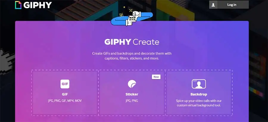 Comme nous l’avons mentionné, pour cette tâche dont nous parlons dans ces lignes, nous trouvons ici l’une des propositions les plus populaires. C’est le créateur de GIF animés du portail Giphy qui, comment pourrait-il en être autrement, nous permet de créer ces animations à partir d’une séquence d’images que nous avons précédemment téléchargées sur la plateforme. Ceux-ci peuvent être, par exemple, d’autres GIF sans arrière-plan que nous avons sur le disque.
