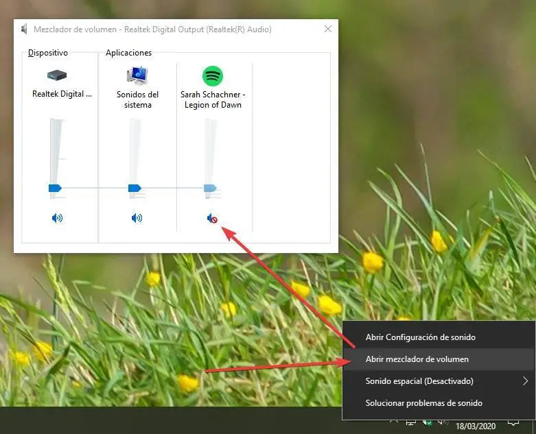 Il se peut que Spotify ne sonne pas sur notre ordinateur car l’application a été mise au silence. Windows 10 nous permet de désactiver facilement les applications individuellement afin qu’elles arrêtent de sonner pour ne pas déranger.