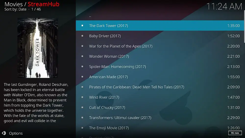 En regardant la liste des films, vous pouvez voir des informations utiles. Par exemple, l’année de sortie du film est écrite en blanc à côté du titre. De plus, lorsque vous survolez un titre, vous verrez un synopsis de l’intrigue du film dans une zone à gauche.
