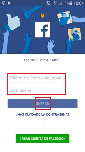 - Lorsqu’il s’ouvre, commencez par entrer votre e-mail ou numéro de téléphone d’utilisateur ainsi que le code d’accès dans les deux champs que vous verrez à l’écran. Appuyez ensuite sur le bouton de connexion pour pouvoir accéder à votre profil depuis votre mobile.
