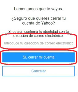 • Sur l’écran suivant, écrivez l’email à supprimer dans le champ prévu à cet effet et appuyez sur le bouton «Oui, résilier ce compte» ou «Oui, fermer mon compte».