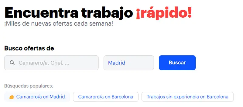 Désormais, il n’est plus nécessaire d’aller business par business CV en main, il existe des plateformes qui s’assurent que les entreprises déposent leurs offres d’emploi afin que les personnes intéressées puissent proposer leur candidature. Job Today est l’un des plus importants aujourd’hui, tout comme le célèbre InfoJob .L’entreprise du même nom a lancé cette plateforme en 2015 afin de faciliter la recherche d’emploi et, depuis, elle n’a fait que grandir, au point d’atteindre quatre millions d’utilisateurs enregistrés.