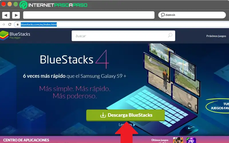 - La première chose sera d’ installer l’émulateur sur votre PC (ci-dessous vous avez le lien) , lorsque vous entrez dans le portail cliquez sur le bouton vert «Télécharger Bluestacks». Sélectionnez ensuite le fichier d’installation et continuez avec toutes les instructions.