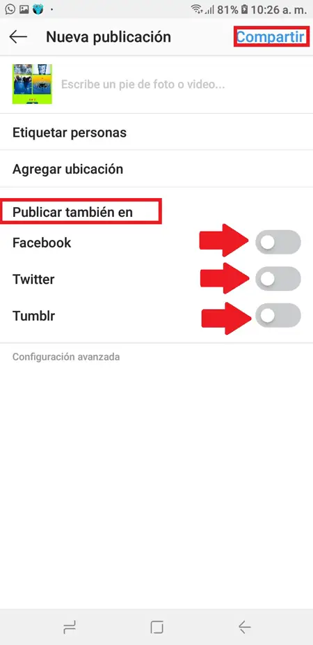 Comme nous le savons déjà, chaque fois que nous publierons une nouvelle image ou vidéo dans l’application Instagram, nous avons la possibilité de lier ledit contenu à d’autres réseaux sociaux , que ce soit Facebook, Twitter, Tumblr, Ok.ru ou Ameba . Cela va créer une sorte de sauvegarde où tout le contenu publié sur ce réseau social sera publié en même temps dans l’ une des précédentes que nous avons sélectionnés.
