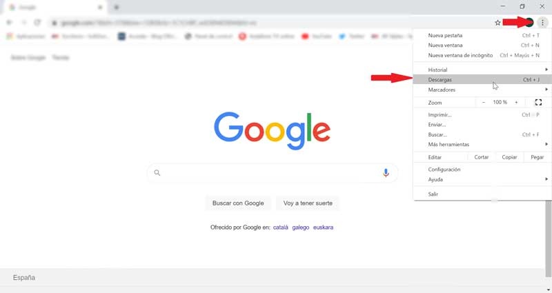 Pour effacer l’historique de téléchargement de Chrome, il suffit de cliquer sur les trois boutons en haut à droite, de sorte que le menu s’ouvre et que nous sélectionnons la section «Téléchargements». Nous pouvons également y accéder en utilisant le raccourci clavier «Ctrl + J». Maintenant, la page «Téléchargements» apparaîtra, avec tous les téléchargements classés par date. Nous pouvons ensuite supprimer un téléchargement particulier ou la liste complète des téléchargements à la fois.