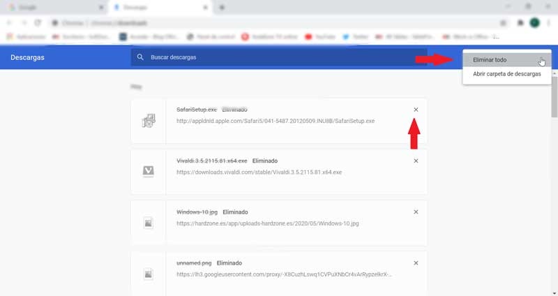 Le navigateur populaire d’Apple a également sa propre version pour Windows. Par conséquent, si nous l’utilisons pour télécharger des fichiers depuis Internet, cela nous permet également de nettoyer tous les téléchargements effectués.
