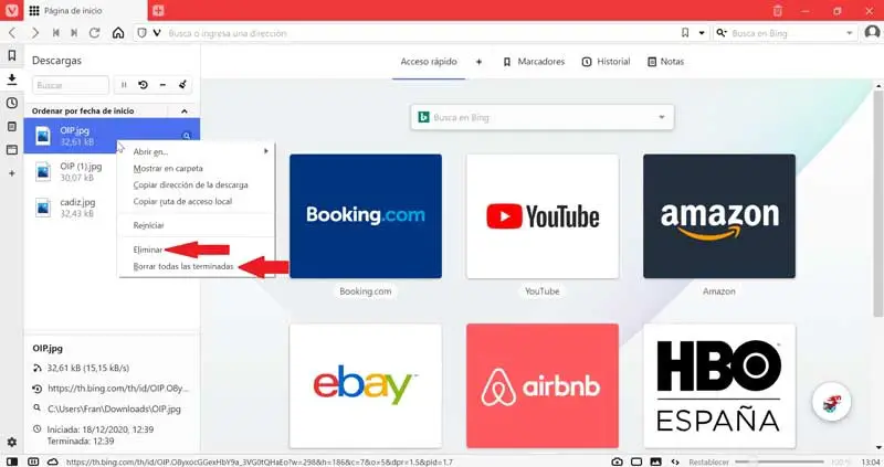 L’un des navigateurs qui prend le plus de boom ces dernières années est Vivaldi, qui nous permet également de garder notre sécurité en sécurité, donnant la possibilité de supprimer les téléchargements effectués, soit individuellement, soit de manière générale.