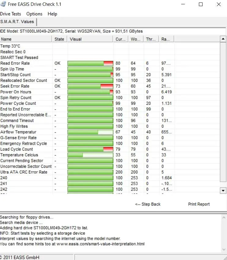 Il y a beaucoup de données SMART liées aux disques durs que ces programmes peuvent nous fournir. En fait, nous ne comprendrons même pas beaucoup d’entre eux, à moins que nous ne soyons des professionnels du domaine. Par conséquent, pour nous faciliter les choses, nous trouvons EASIS Drive Check. C’est une telle solution qui montre l’analyse des unités d’une manière plus visuelle. Avec tout cela, ce qu’il essaie de faire, c’est de faciliter la compréhension des données SMART qu’il propose.