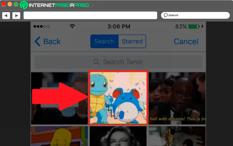 - Une nouvelle fenêtre apparaîtra avec tous les Gifs disponibles dans la bibliothèque de l’application, ici vous devez trouver celui que vous aimez le plus et cliquer dessus.