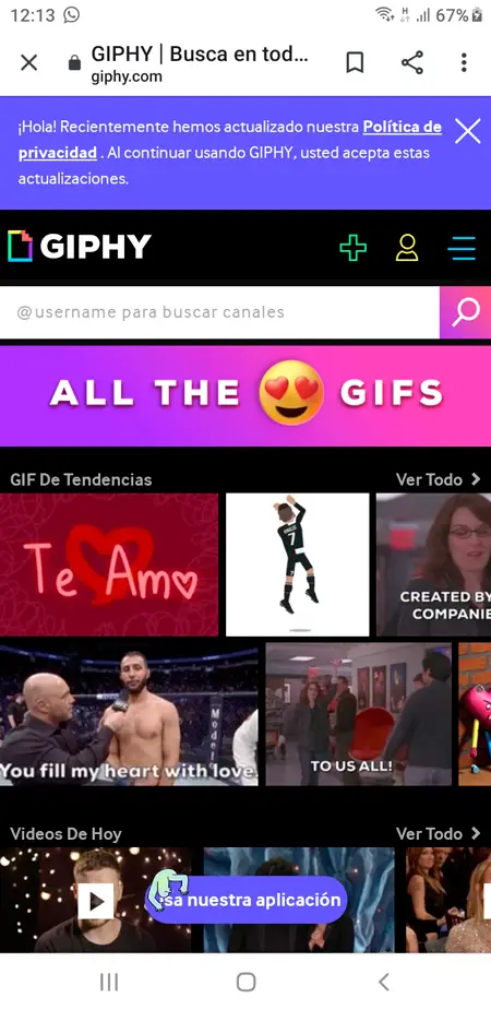 Giphy est actuellement l’un des meilleurs portails Web pour télécharger ce type d’éléments, dans lequel vous pouvez trouver un grand nombre de courtes reproductions de tous genres, qu’il s’agisse d’ amour, de bandes dessinées, de films, de sports , entre autres. Cela vous donne la possibilité d’ étendre davantage la bibliothèque gif que WhatsApp vous propose et ainsi de partager de nouvelles images avec vos contacts dans l’application .