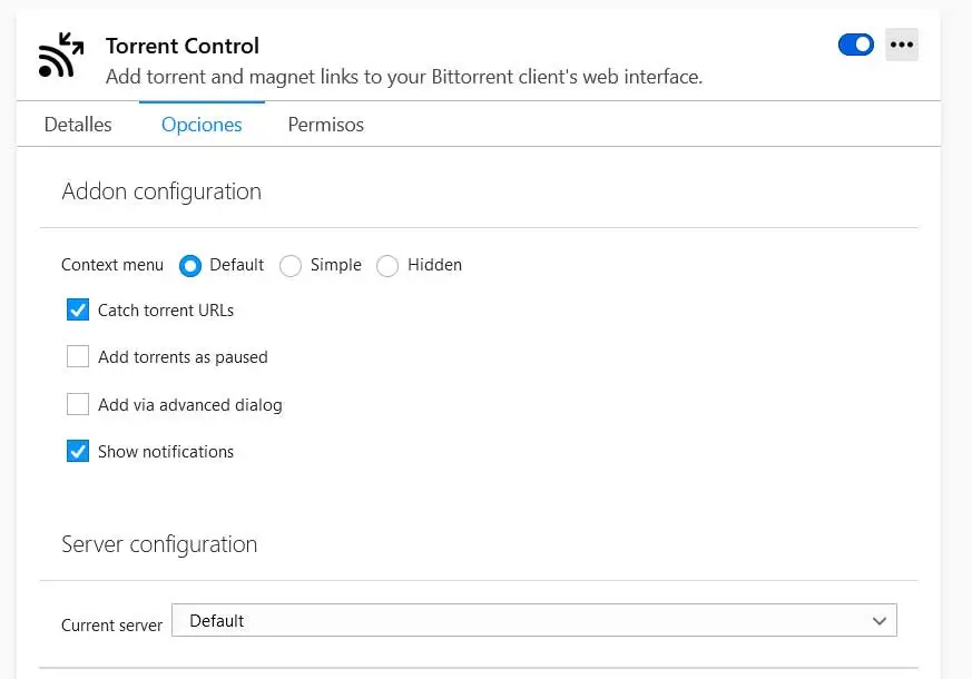En fait et en fonction des logiciels pour se déplacer sur Internet que nous utilisons régulièrement, nous avons plusieurs alternatives à cet égard. Par exemple, c’est le cas de Torrent Control pour Firefox que vous pouvez télécharger ici . Cette extension nous permet de traiter des torrents ou des liens magnétiques directement depuis le logiciel Mozilla.