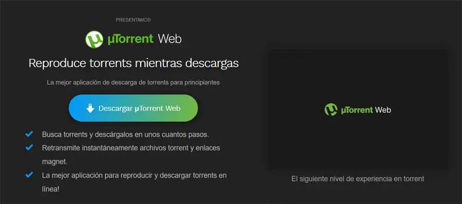 De cette façon, ce que certains ont fait a été d’amener le client à sa propre version Web à télécharger à partir du navigateur lui-même. Par exemple, c’est le cas de l’un des clients les plus populaires, puisque ses dirigeants ont lancé il y a quelque temps uTorrent Web . De cette manière et comme vous pouvez l’imaginer, nous pouvons télécharger ces fichiers directement depuis notre navigateur préféré, quel qu’il soit.