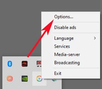 Il est à noter qu’en plus de tout ce qui est discuté, c’est-à-dire le programme installé dans Windows 10, dans son menu Démarrer et l’extension du navigateur, il existe encore une autre section. Avec cela, ce que nous voulons vous dire, c’est que le programme dont nous parlons place également une nouvelle icône dans la barre d’état système de Windows . Cela peut être trouvé dans un premier temps caché à côté de la batterie ou de la connexion réseau . Par conséquent, une fois que nous les aurons localisés, nous n’aurons plus qu’à cliquer avec le bouton droit de la souris dessus.