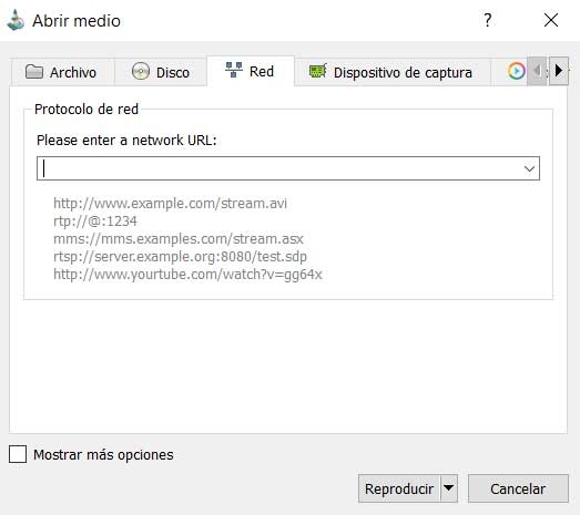 Ici, comme nous pouvons le voir de première main, nous trouvons plusieurs propositions toutes pour la reproduction de contenu. Dites que depuis la plateforme Ace Stream, en plus d’accéder au contenu en ligne, nous pouvons également les lire localement. À ce stade, il suffit d’opter pour Open network dump afin de pouvoir saisir l’URL correspondante du contenu que nous voulons voir, par exemple.