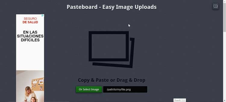 Cette application Web nous permet de télécharger des images rapidement et gratuitement, avec un simple glisser-déposer. Il permet de télécharger des photos jusqu’à 32 Mo et une fois téléchargé, il nous fournit un lien direct vers l’image, des miniatures en BBCode et HTML, étant compatible avec les formats d’image populaires tels que JPEG, PNG, BMP, GIF, WebP, Heic et PDF . Une autre option intéressante est le grand nombre d’options pour supprimer l’image automatiquement après une période de temps terminée. De cette façon, nous pouvons l’éliminer de 5 minutes plus tard jusqu’à un mois plus tard, ou le laisser définitivement. C’est une option assez complète et elle est traduite en espagnol.