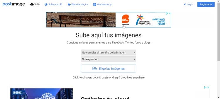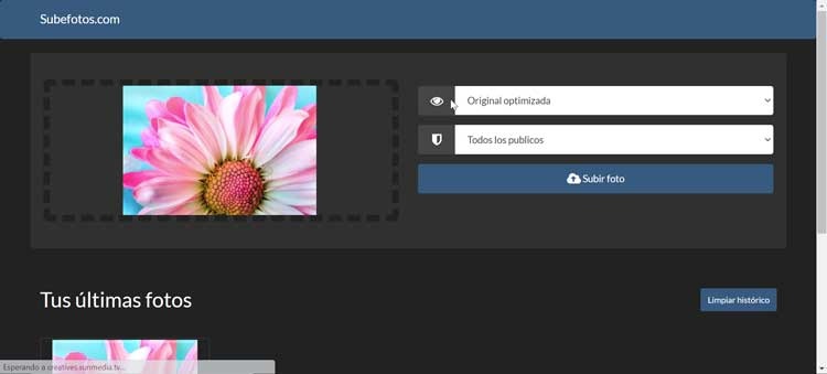 C’est l’un des sites Web les plus connus où nous pouvons télécharger toutes nos photos et vidéos rapidement, car il offre une grande compatibilité avec différents formats de téléchargement. De cette façon, nous pouvons télécharger des photos aux formats PNG, JPEG, GIF, TIFF, SWF ou BMP. Cela nous permet également d’ optimiser l’image , de changer sa taille et de l’envoyer sur Twitter. De plus, nous pouvons créer des galeries avec nos photos pour les garder organisées et décider lesquelles d’entre elles nous voulons rendre publiques afin qu’elles puissent être vues et appréciées par d’autres utilisateurs. Pour commencer à télécharger les images, faites simplement glisser et déposez l’image, le processus est donc très simple. Le seul inconvénient est que nous devrons nous inscrire.