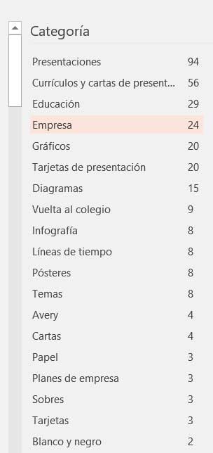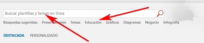 Mentionnez que l’application elle-même nous propose une série de recherches suggérées à cet égard, qui correspondent aux plus courantes. Ainsi, nous les retrouverons liés à l’ éducation , aux affaires, à l’infographie, au graphisme , etc. Comme nous pouvons le voir, c’est le moyen le plus simple d’utiliser un modèle et donc de gagner beaucoup de temps, mais voyons comment installer et utiliser d’autres téléchargés sur Internet.