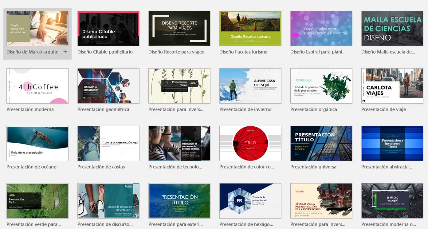 Pour ceux d’entre vous qui ne savent pas de quoi nous parlons, dites que ces modèles ou thèmes peuvent nous faire gagner beaucoup de travail, ainsi que du temps. Gardez à l’esprit que, selon le thème, nous trouvons des modèles qui incluent déjà des photos, des arrière-plans, des polices, etc., liés à ce thème. Comme il est facile de l’imaginer, nous sauvegardons déjà tout cela depuis le début, il est donc habituel de ne devoir personnaliser que les thèmes auxquels nous nous référons. Cependant, il est conseillé d’utiliser la conception la plus appropriée pour les diapositives PowerPoint .