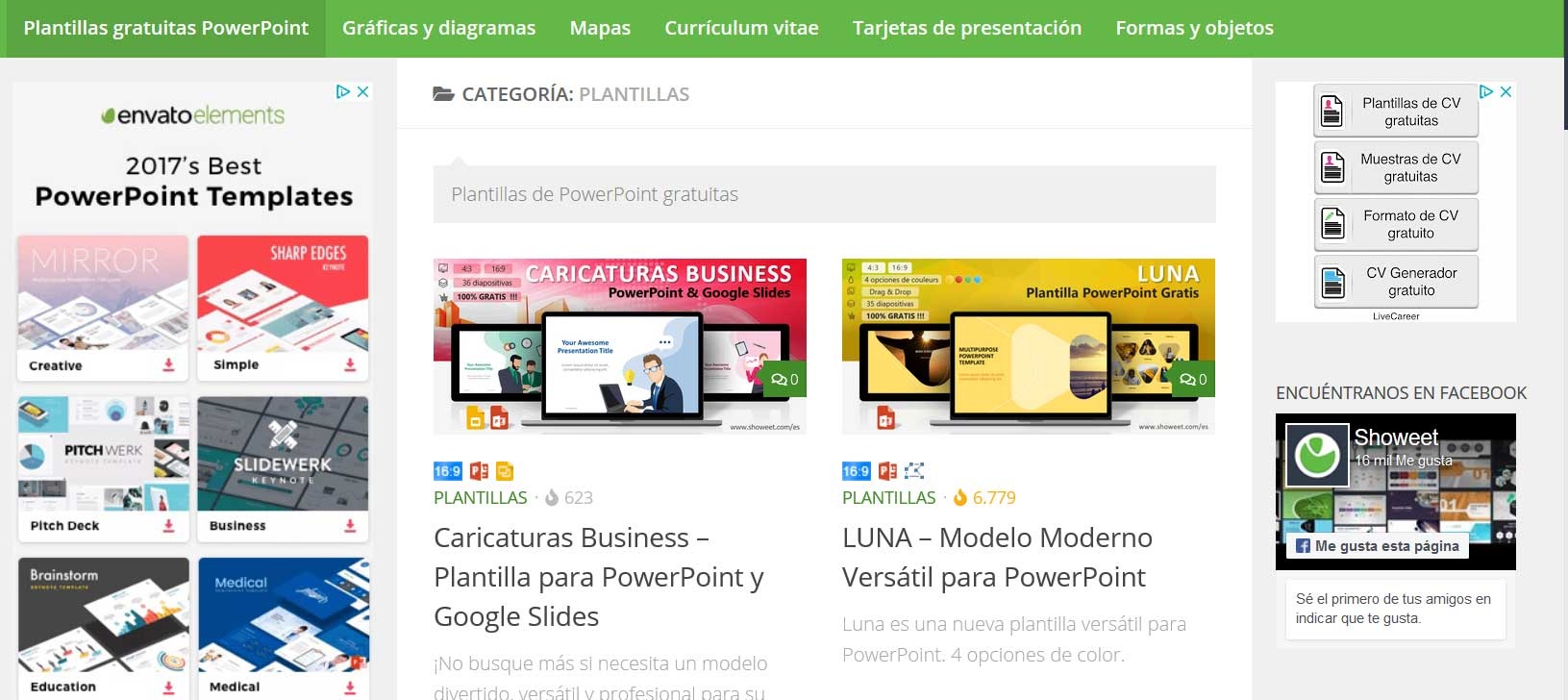 Ceci est un autre site Web en ligne intéressant auquel vous pouvez accéder à partir d’ici et qui nous offre une bonne quantité de ce contenu . Les modèles que nous téléchargeons ici font référence à des catégories telles que CV , diagrammes, cartes de visite, graphiques, cartes, etc. Ceux-ci sont situés en haut de l’interface principale lors de l’accès au site sur lequel nous commentons.