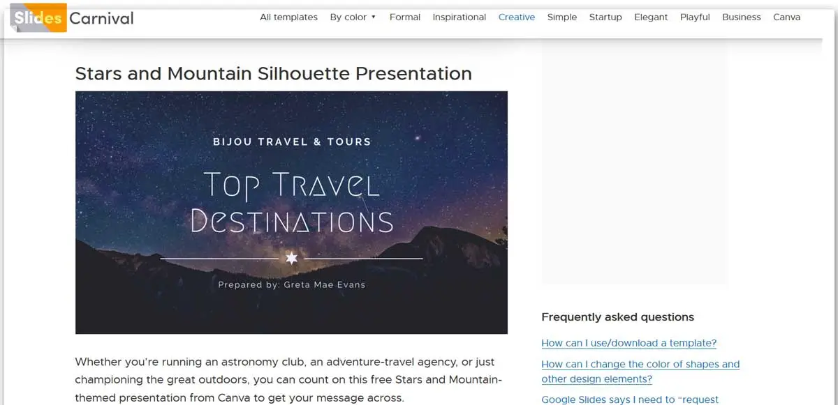 Afin d’élargir les possibilités que PowerPoint nous présente, nous pouvons également utiliser SlidesCarnival . Il s’agit d’un site Web auquel vous accédez à partir de ce lien qui nous propose une série de catégories pour localiser plus rapidement vos modèles. On les retrouve par rapport au marché professionnel, pour des dates plus importantes comme Noël , d’autres plus simples, plus élégantes, etc.