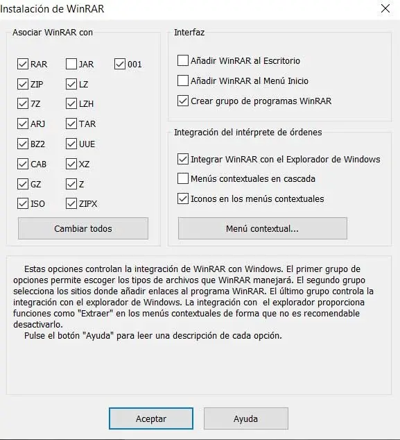 Eh bien, une fois que l’exécutable est enregistré sur le PC, il suffit de l’installer comme n’importe quel autre programme. Dans le processus d’ installation , nous devrons également associer tous les formats de compression souhaités à cette nouvelle application. Il est à noter que par défaut, tous sont déjà marqués.