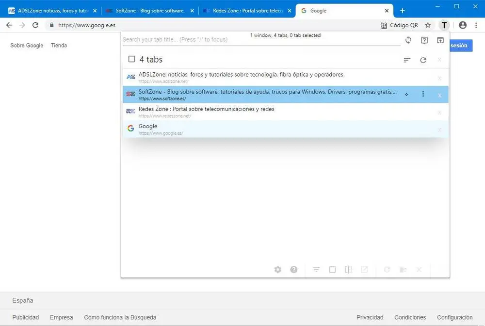 C’est l’une des extensions les plus téléchargées pour changer la façon dont nous visualisons les onglets Chrome. Cette extension affichera une icône à droite de la barre d’adresse qui, lorsqu’elle sera enfoncée, nous montrera une liste avec tous les onglets que nous avons ouverts dans le navigateur.