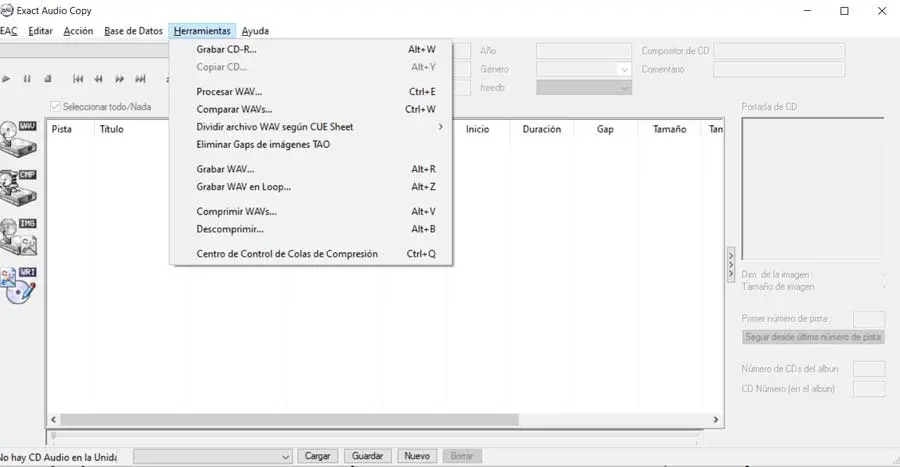 Por otro lado, a la hora de ripear CDs, también nos encontramos con Extract Audio Copy, un programa gratuito que podréis descargar desde este enlace. Cabe mencionar que esta es una aplicación algo más completa que la anteriormente mencionada. Este es un programa que también es conocido como EAC y que se centra en el ripeado de CDs. Cuenta con multitud de funciones adicionales que nos permiten editar la compresión, o corrige las imperfecciones del audio. Esto es algo que será de gran utilidad para los soportes físicos dañados.