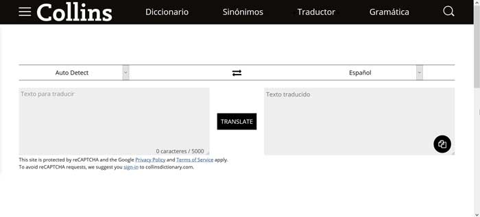 Collins Dictionary Translator est une plate-forme avec laquelle nous pouvons traduire du texte dans un grand nombre de langues. De plus, il comprend des dictionnaires . ainsi que des synonymes . Le dictionnaire couvre de nombreux termes littéraires et inhabituels. Cela sera utile, par exemple, pour faire des mots croisés. Avec la section antonymes, cela peut être la solution idéale pour toute écriture que nous devons faire pour travailler ou étudier. Grâce au dictionnaire en ligne des synonymes, nous pourrons obtenir de grandes informations linguistiques.