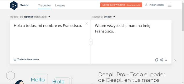 DeepL Translator est un service de traduction automatique en ligne qui nous permet de traduire en 9 langues avec 72 combinaisons de langues (allemand, français, espagnol, anglais, italien, polonais, portugais, néerlandais et russe), avec lesquelles nous réaliserons rapidement et précis. Cet outil reconnaît rapidement et automatiquement la langue que nous écrivons, la convertissant dans la langue que nous voulons au-delà d’une simple traduction littérale, car il comprend des nuances linguistiques et ses propres expressions.