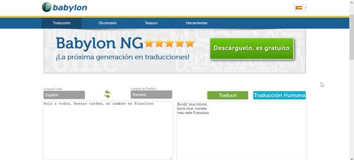 Babylon Online Translator est un traducteur automatique avec lequel nous pouvons traduire des mots, des phrases et des textes complets de la manière la plus rapide et la plus efficace, ainsi que trouver toutes sortes de synonymes et antonymes que nous pouvons traduire. Il possède une base de données de plus de 1700 dictionnaires , glossaires, encyclopédies et lexiques qui couvrent un nombre infini de sujets pour un total de plus de 77 langues . C’est pourquoi c’est l’une des plateformes de traduction en ligne les mieux notées avec des millions d’utilisateurs à travers le monde. Sans surprise, Babylon est une entreprise avec plus de 19 ans d’expérience dans le secteur de la traduction.