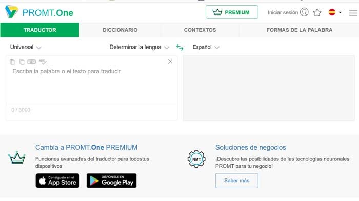 PROMT Online Translator est un traducteur en ligne avec lequel nous pouvons traduire des textes en anglais, arabe, grec, hébreu, espagnol, italien, kazakh, catalan, chinois, coréen, allemand, néerlandais, portugais, russe, turc, ukrainien, finnois, français et Japonais, ainsi que hindi. Pour la plateforme, il est responsable de l’utilisation des réseaux de neurones , ainsi que des technologies de traduction statistique, analytique et hybride. Avec cet outil, nous pouvons traduire des mots et des expressions idiomatiques. Nous pouvons également traduire des phrases individuelles et des textes complets dans différentes langues.