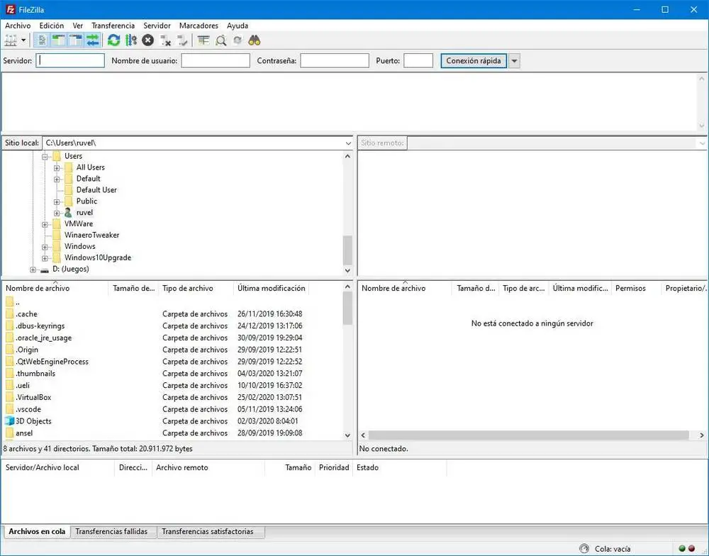 C’est l’un des clients FTP gratuits les plus populaires et les plus utilisés, compatible avec les systèmes d’exploitation tels que Windows, Linux ou macOS. En utilisant cet outil, nous pouvons envoyer des fichiers et les télécharger à grande vitesse avec une taille allant jusqu’à 4 Go. Avec cette application, nous pouvons également renommer, copier, déplacer ou supprimer des fichiers, étant compatible avec le cryptage SFTP et FTPS pour une plus grande sécurité dans le transfert de données. Il se distingue également par une interface intuitive et simple à partir de laquelle nous pouvons voir tous les fichiers envoyés et téléchargés. Parmi ses inconvénients, il y a l’incapacité de résumer les téléchargements ou les téléchargements de fichiers, ce qui peut les corrompre en cas d’erreurs sur le Web.
