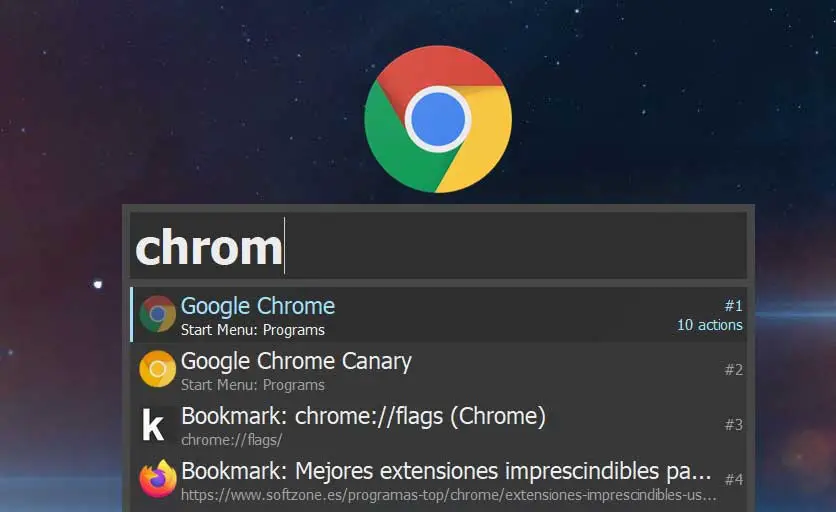 Cela nous mènera à une nouvelle boîte de dialogue de programme où nous pouvons taper ce que nous voulons accéder ou ouvrir. Comme on peut le voir tout de suite, son fonctionnement est extrêmement rapide et fluide. Dès le premier moment où nous commençons à écrire, le programme commence déjà à nous montrer les résultats qu’il trouve sur le PC. Comme nous l’avons mentionné, il peut s’agir de programmes installés sur le PC, de fonctions Windows, de signets que nous avons stockés dans le navigateur, etc.