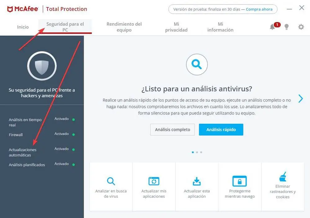 Según los tests de seguridad y rendimiento, es uno de los más eficientes y precisos que podemos usar. Siempre y cuando esté actualizado con las últimas firmas de virus, y tenga la última versión de los escudos de seguridad. A continuación, vamos a ver cómo comprobar el estado de las actualizaciones de este antivirus, cómo configurarlas y cómo actualizar McAfee manualmente.