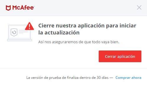 Lo que sí puede que veamos es un mensaje que nos pedirá cerrar el antivirus para acabar de instalar los nuevos componentes. No tenemos que preocuparnos, el antivirus volverá a cargar automáticamente ya actualizado.
