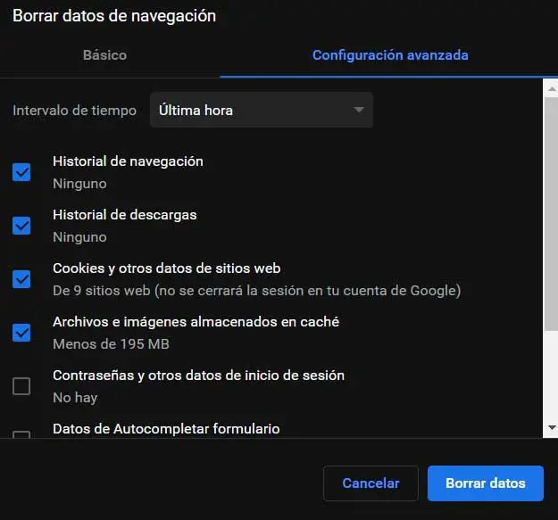 Une autre des solutions possibles que nous pouvons utiliser pour résoudre l’erreur ERR_CONNNECTION_TIMED_OUT dans Chrome, fait référence au cache. Il faut savoir que la plupart des navigateurs actuels stockent des informations dans le cache du PC. Ici, des éléments tels que l’historique, les cookies , les informations d’identification personnelles, etc. entrent en jeu . Malgré leur utilité, ces données peuvent poser certains problèmes, comme c’est le cas. Par conséquent, cela ne fait pas de mal que nous nettoyions ce cache de temps en temps.