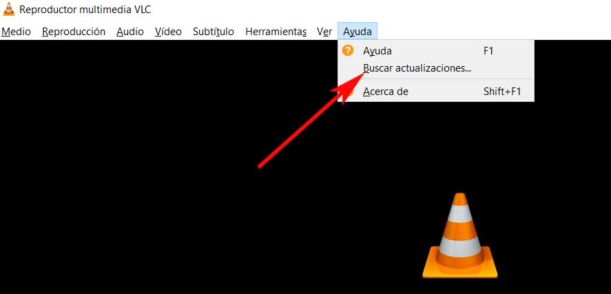 Lors de la mise à jour du logiciel, nous devons également savoir que c’est quelque chose que nous pouvons faire à partir de l’interface de l’application elle-même. Pour ce faire, accédez simplement à l’option de menu Aide / Recherche de mises à jour.
