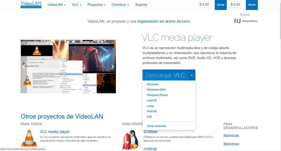 Cela nous permettra d’utiliser le programme sur presque tous les appareils, un PC, un téléphone portable, une console, etc. Il convient également de savoir qu’il s’agit d’un programme entièrement gratuit qui accepte les dons pour le développement et l’amélioration. Nous pouvons même télécharger VLC Media Player, si nous le voulons, à partir du Microsoft Store.