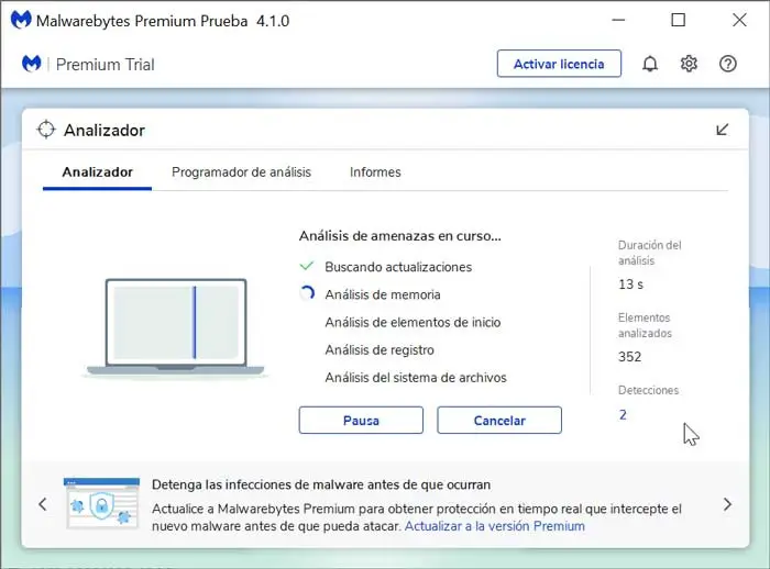 - Détection : Il dispose d’une technologie d’apprentissage automatique pour la détection de Malwarebytes, qui est capable de détecter les anomalies les plus agressives pour les identifier et exécuter les fichiers suspects.