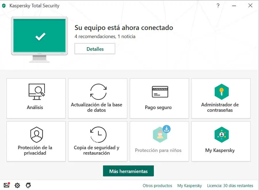 En fonction des besoins de chaque cas, le cabinet nous propose une série de solutions de paiement plus ou moins avancées, ainsi qu’une solution plus simple, gratuite. Dans le même temps, nous vous dirons que la plus avancée de toutes est la suite Kaspersky Total Security , qui comprend un bon nombre de fonctions de protection.