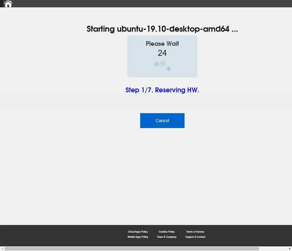 Nous allons localiser la distribution que nous voulons utiliser (dans notre cas Ubuntu), et nous cliquerons sur le bouton « Exécuter en ligne ». Une nouvelle page s’ouvrira avec un compte à rebours de 30 secondes, pendant lequel la machine virtuelle se préparera.