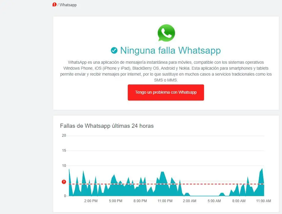 Pour nous assurer que le problème ne vient pas du serveur qui est en panne à ce moment-là, nous pouvons le consulter sur une page Web pour diagnostiquer l’état des applications ou des services Web. A titre d’exemple, nous opterons pour le populaire Downdetector. Nous entrerons et consulterons le nombre d’incidents signalés par les utilisateurs, s’il est supérieur à la normale, ce serait un problème avec le serveur de l’entreprise.