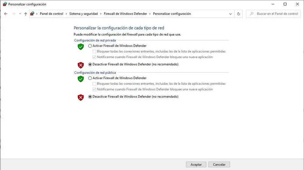 Nous pouvons le trouver en recherchant Pare-feu> Activer ou désactiver le pare-feu Windows.