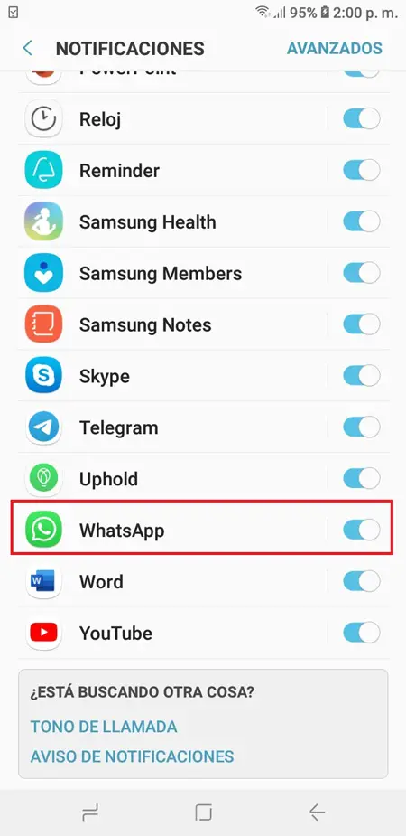 - Vous y verrez une liste de toutes les applications installées sur l’appareil.Dans ce cas, nous recherchons WhatsApp et désactivons le commutateur de notification afin qu’elles n’apparaissent plus.