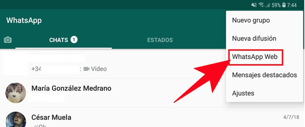 - Un menu déroulant apparaîtra dans lequel nous sélectionnons «WhatsApp Web».