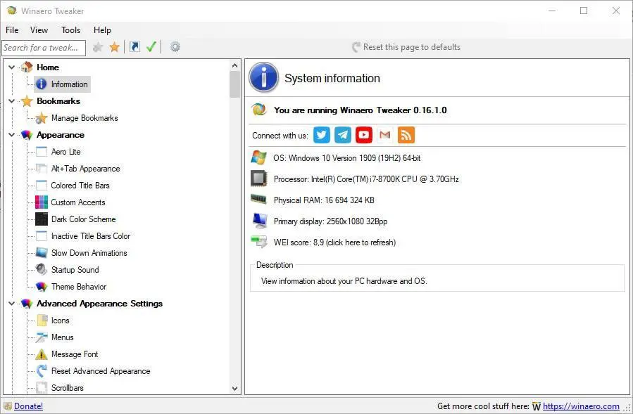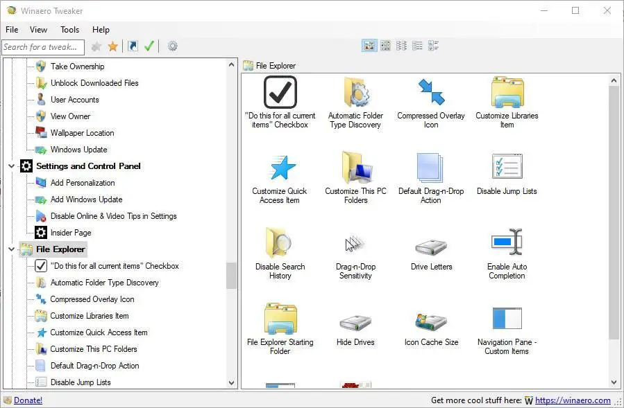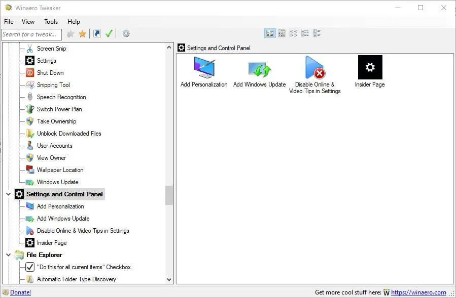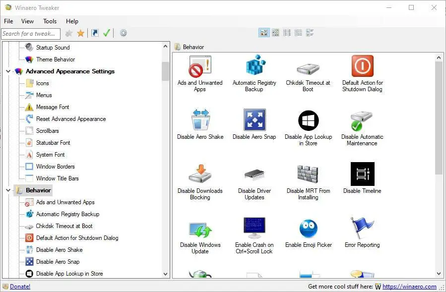 Winaero Tweaker: toutes les options secrètes de Windows à portée de main