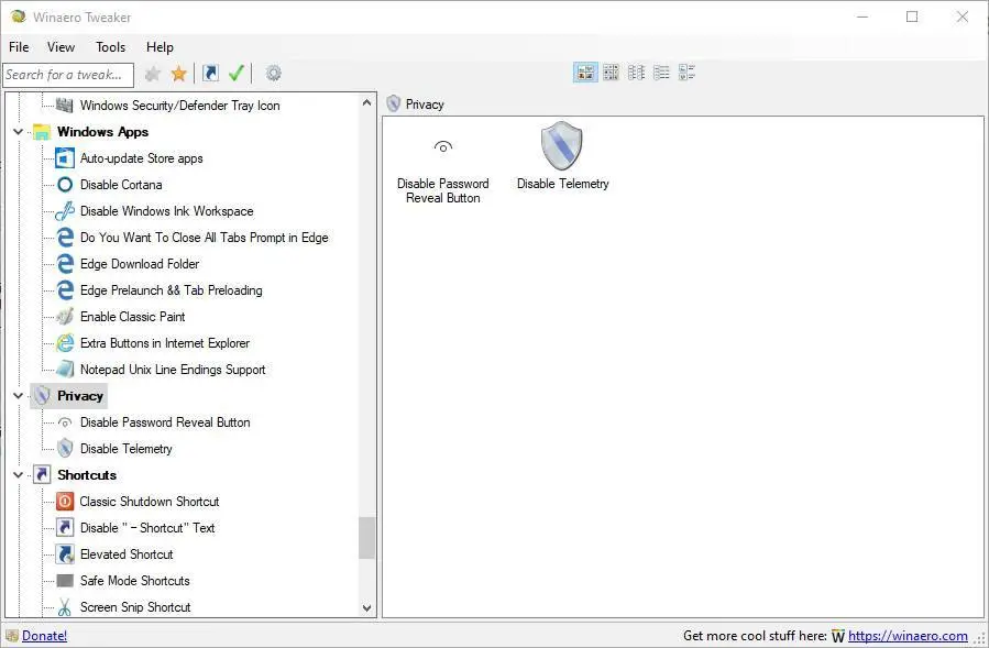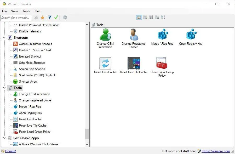 Winaero Tweaker est un outil complet créé afin d’unifier tous les programmes proposés par ces développeurs dans un seul outil universel. De cette façon, les utilisateurs peuvent avoir toutes les options en un seul endroit, ainsi que pouvoir trouver des fonctions et des fonctionnalités supplémentaires pour pouvoir avoir un contrôle absolu sur le système d’exploitation.